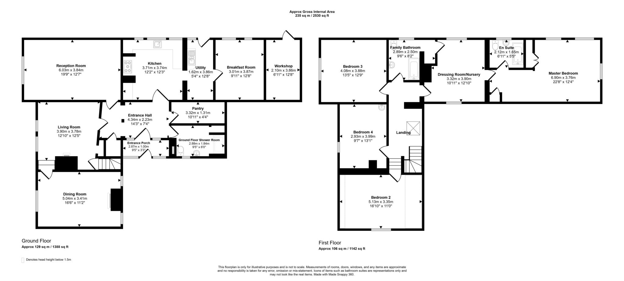 Alongside the master bedroom are a further four double bedrooms and finally a three-piece family bathroom.